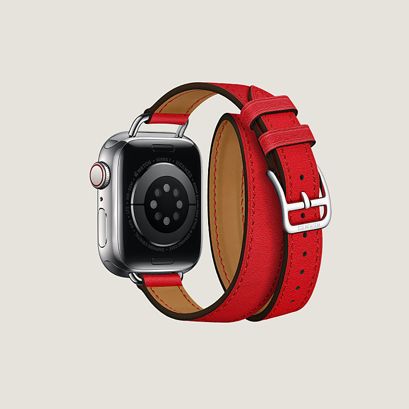 Double-Tour-Armband aus Swift-Kalbsleder in Rouge de Cœur