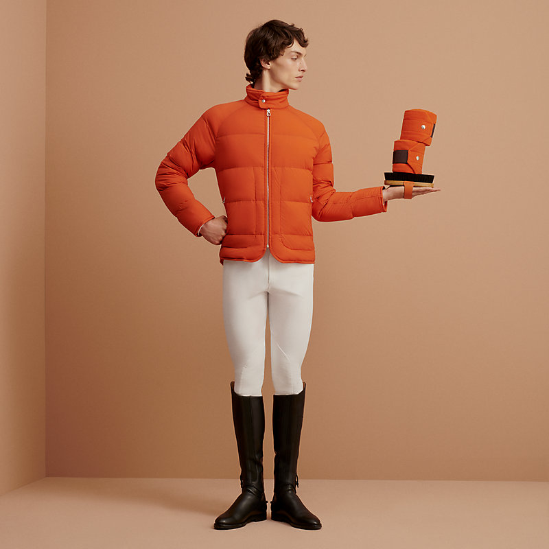 - Clou de Selle "Hermès Sellier" im Nacken (Außenseite 85 % Polyamid und 15 % Elastan, Innenseite 100 % reine, natürliche Gänsedaunen)