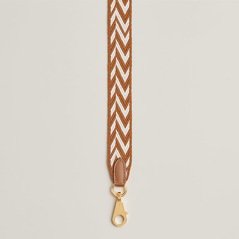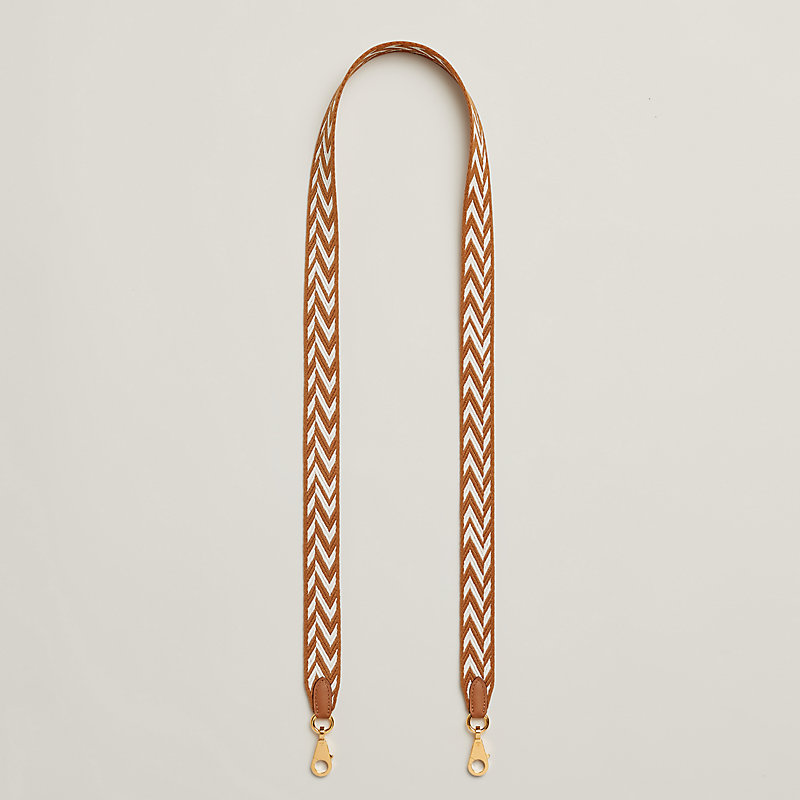 Schulterriemen aus Zigzag-Gurt und Swift-Kalbsleder, vergoldeter Schmuck, großer Karabiner