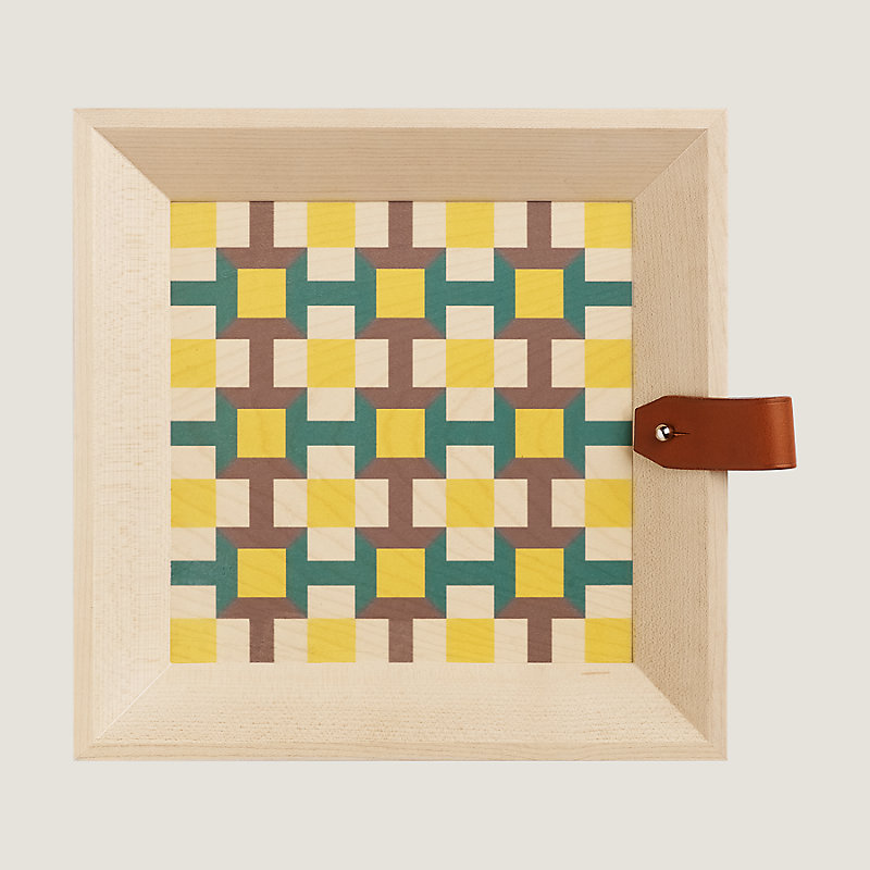 Tablett aus bedrucktem Ahornholz und Zaum-Rindsleder
