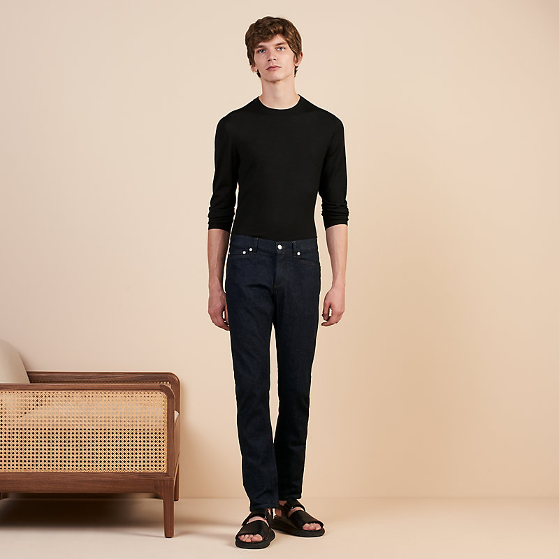 Verwaschene Jeans aus Denim, schmaler Schnitt, Jacron innen aus Lammleder mit Anti-Soiling-Beschichtung (100 % Baumwolle)