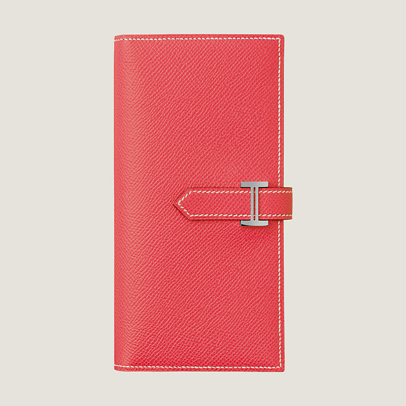 Wallet with gusset in Epsom calfskin with 5 credit card slots, 2 pockets, zipped change purse and palladium plated 'H' tab closure