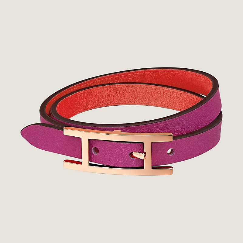 Reversible double tour bracelet in Swift calfskin with rose gold plated hardware