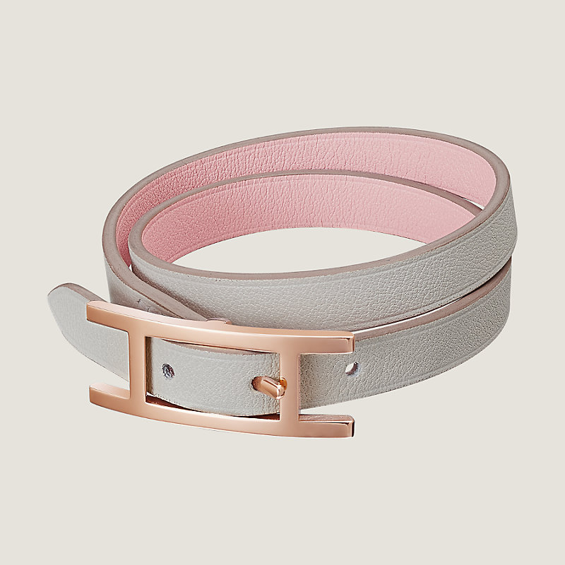 Reversible double tour bracelet in Swift calfskin with rose gold plated hardware
