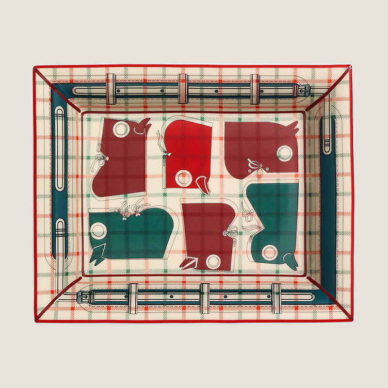 2H change tray in printed Limoges porcelain with velvet goatskin base