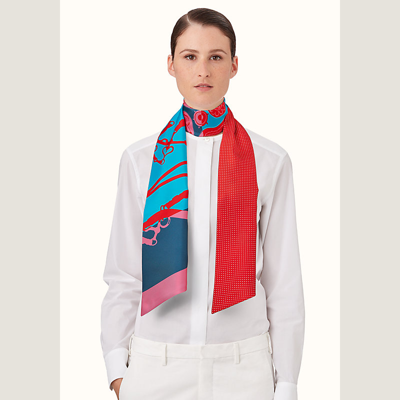 Preserve the beauty of your scarf by avoiding contact with rain, water and other chemicals. Store it flat and untied, and entrust it to a professional dry cleaner when needed.