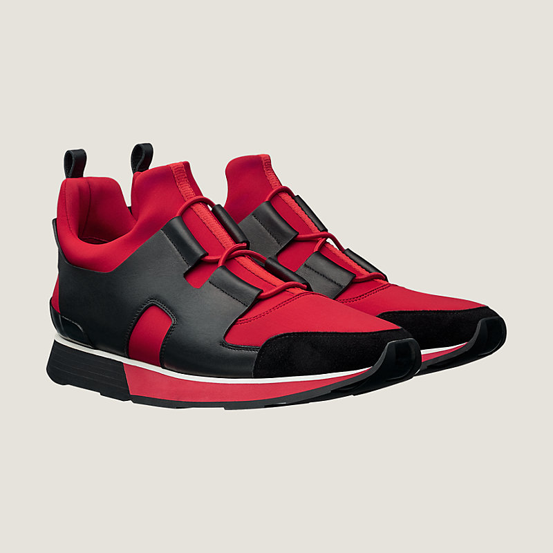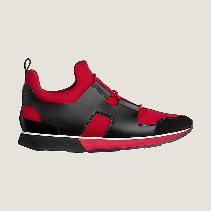 Sneaker in technical canvas and calfskin with fixed laces for seamless slip-on wear