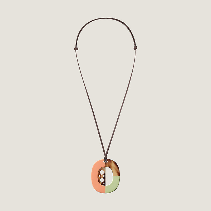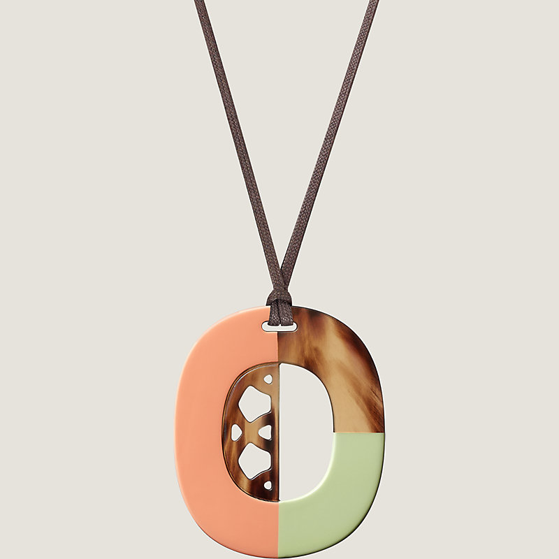 Hermes pendant in lacquered buffalo horn, adjustable waxed cotton strap