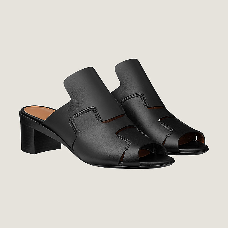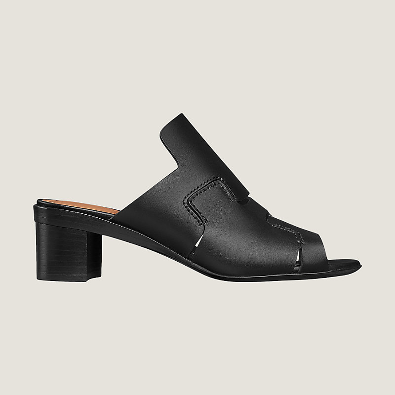 Hermes raw-edged calfskin mules with leather lining and insole, heel with leather sole