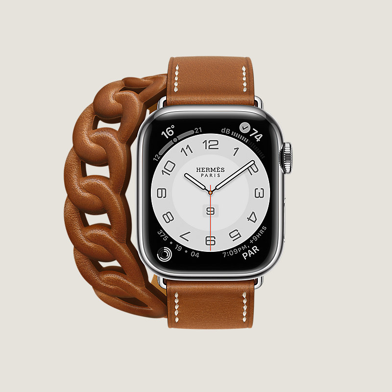 Apple Watch Hermes Series 7 case in stainless steel 41 mm & Double tour band in Fauve Barenia calfskin