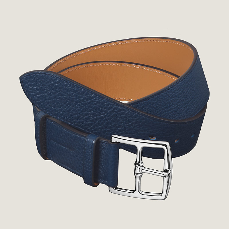 Hermes leather belt in taurillon Clemence leather, palladium plated buckle