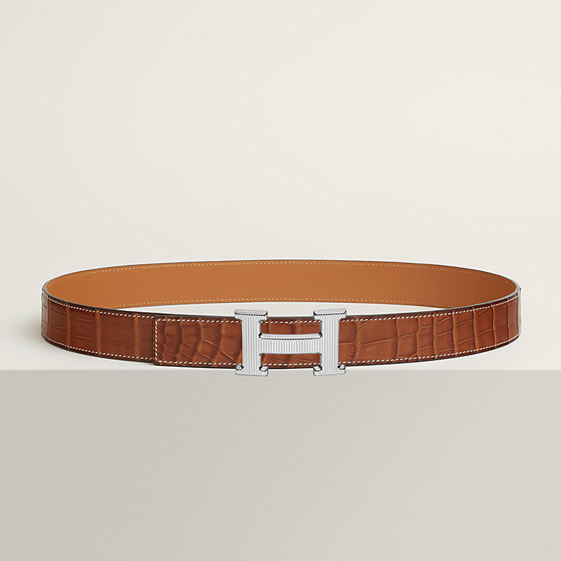 Boucle de ceinture H Striée & Cuir de ceinture 32 mm