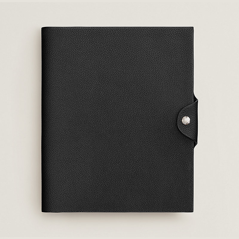 Couverture de cahier pour recharge en veau Togo, fermée par un bouton-pression « clou de selle » argenté palladié