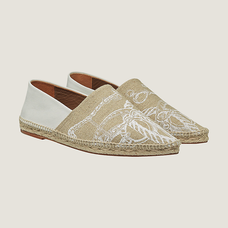 Espadrilles bi-matières, en toile de camp imprimée « Della Cavalleria » et arrière uni en veau