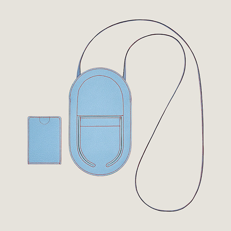 Étui téléphone en chèvre Mysore, piqûres contrastées, bandoulière pour un porté épaule ou croisé. Peut contenir un grand smartphone