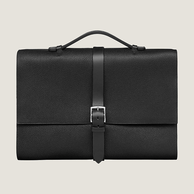 Porte-documents en taurillon Maurice et vache Hunter, bijouterie argentée palladiée