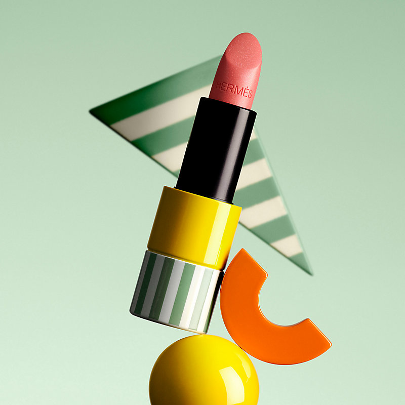 A coleção Rouge Hermès Primavera-Verão 2023 traz três novos tons em edição limitada. Uma paleta de cores veranis com um novo acabamento brilhante, como um véu de luz que colore delicadamente os lábios. Os objetos criados por Pierre Hardy são decorados com riscas de inspiração balnear e contemporâneas, como um convite para estar à beira-mar.