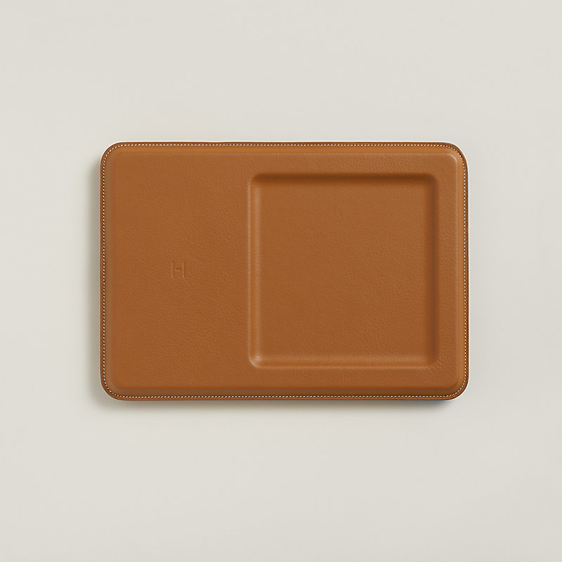 Vide-poche chargeur sans-fil gainé de taurillon H, composé d'un emplacement de charge et d'un espace vide-poche.
