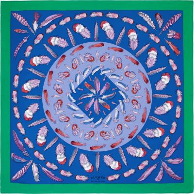 Plumes II scarf 90, Color: Blue