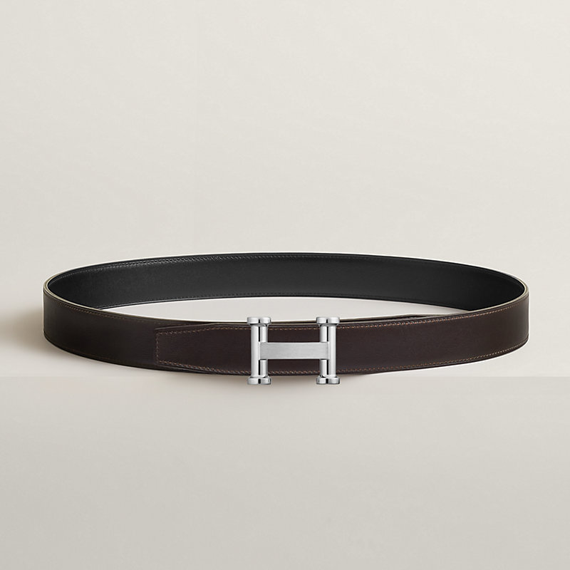 & Reversible leather strap in Box 135 calfskin. Made in France