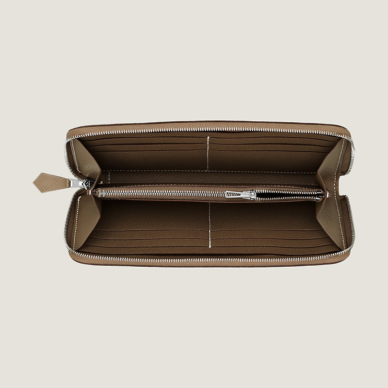 Wallet in Epsom calfskin with 10 credit card slots, 4 pockets, bill pocket, change purse with zip closure and palladium plated zip closure