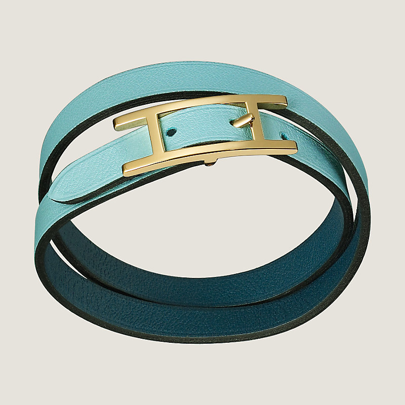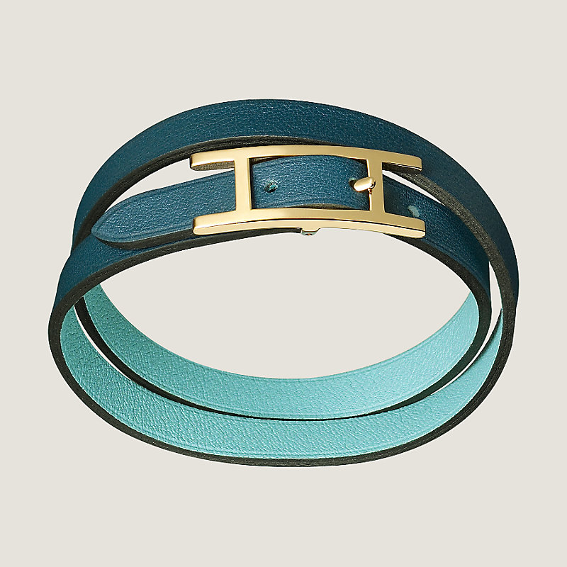 Reversible double tour bracelet in Swift calfskin with gold plated hardware