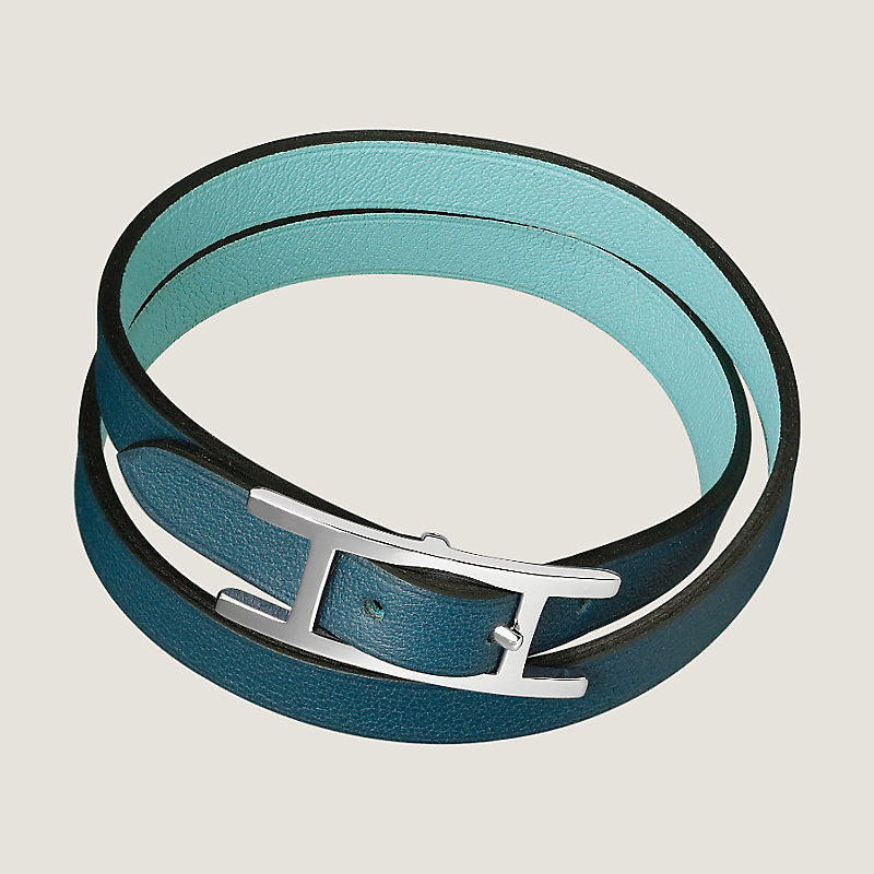Reversible double tour bracelet in Swift calfskin with palladium plated hardware