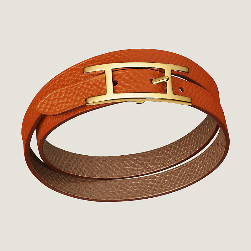 Reversible bracelet in Swift and Epsom calfskin with gold plated hardware