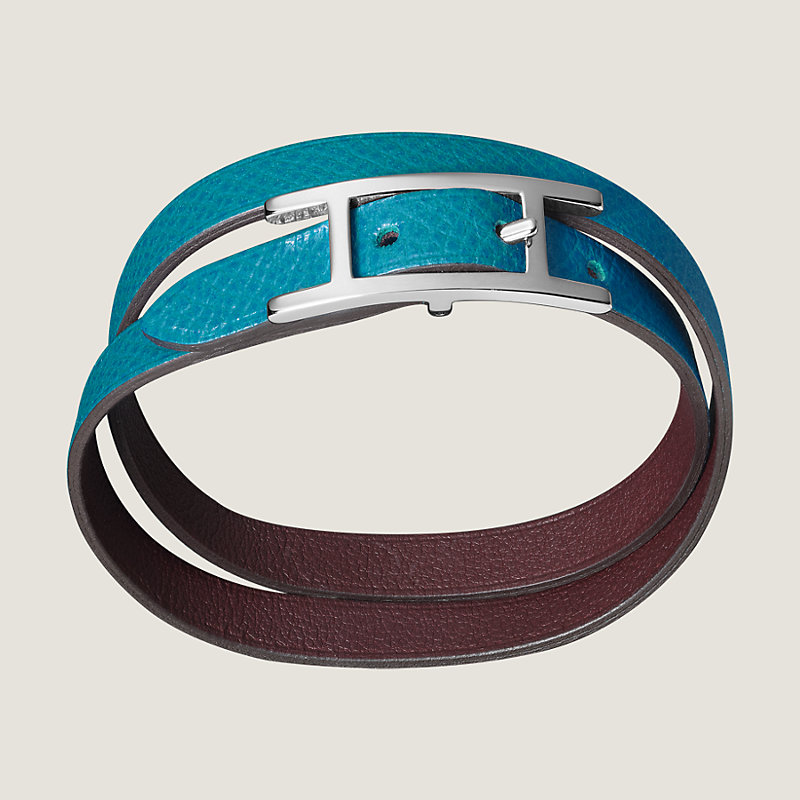 Reversible bracelet in Swift and Epsom calfskin with palladium plated hardware