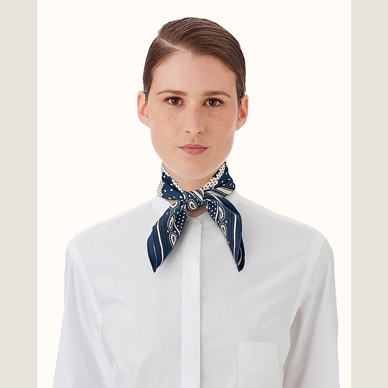Preserve the beauty of your scarf by avoiding contact with rain, water and other chemicals. Store it flat and untied, and entrust it to a professional dry cleaner when needed.