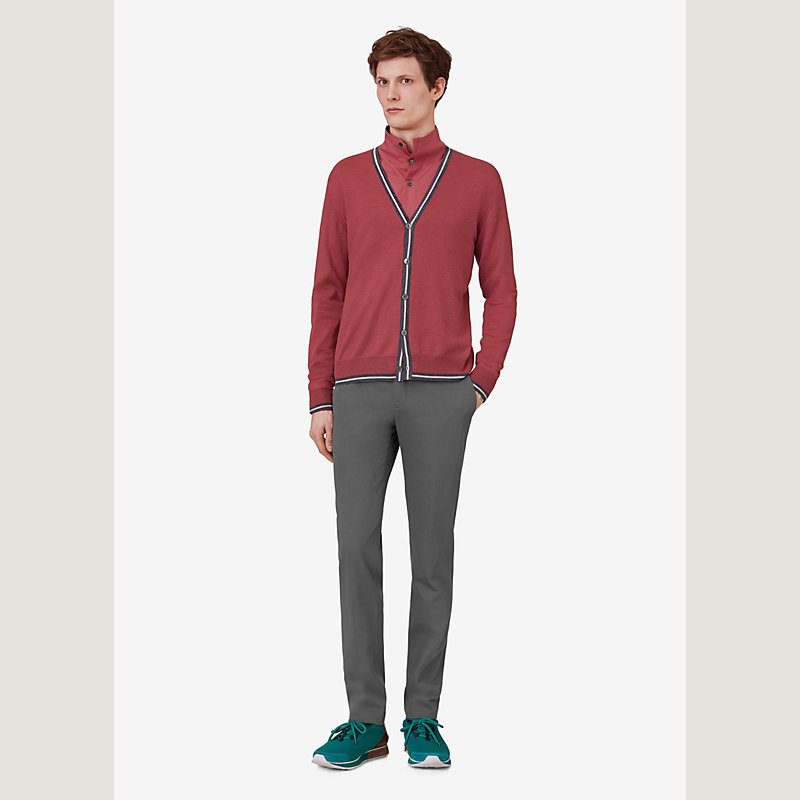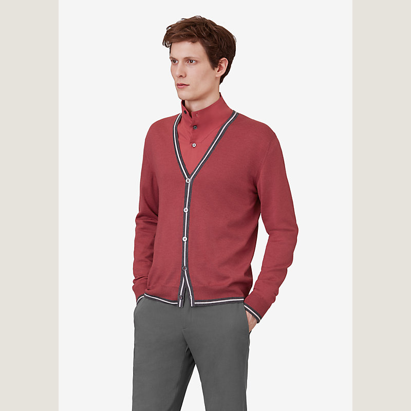 Hermes buttoned cardigan with contrasted stripes (80% cashmere, 20% silk)
