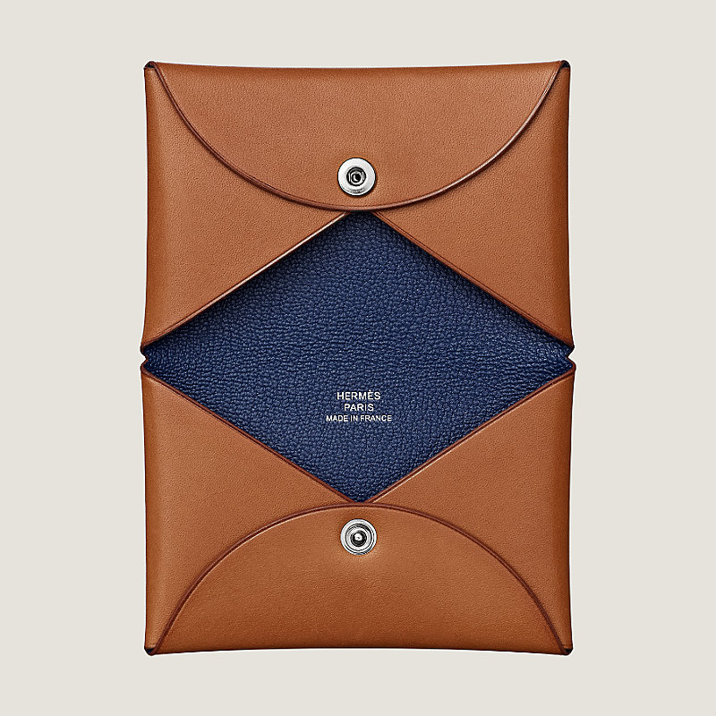 Hermes leather card case in Barenia calfskin and pigmented goatskin