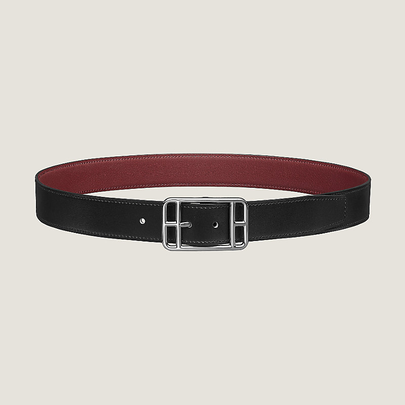 Hermes belt in Box calfskin/Taurillon Cristobal leather, palladium plated buckle