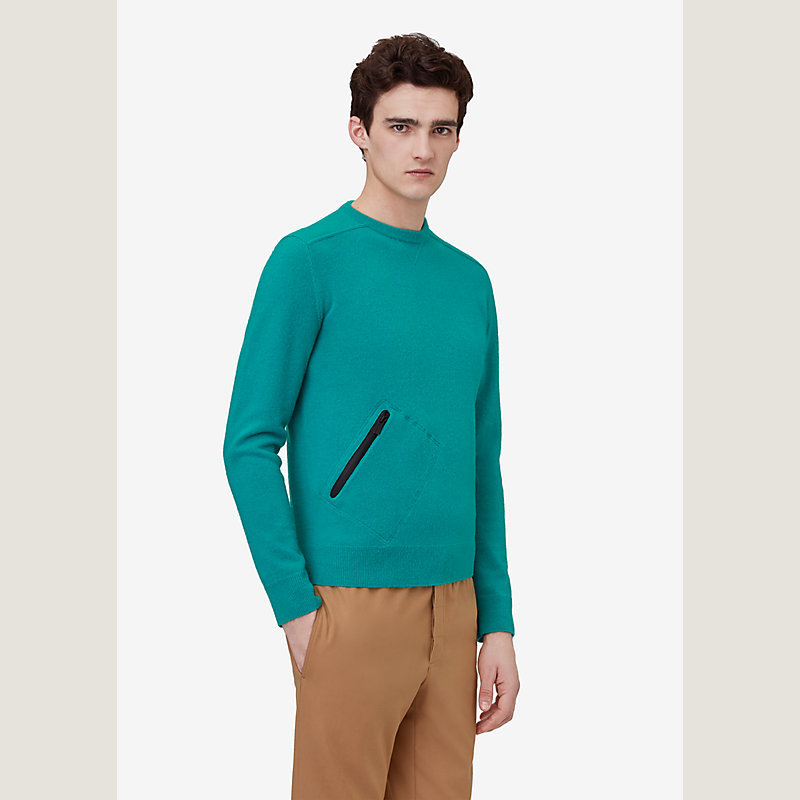Hermes crewneck sweater in wool and cashmere, one front zip pocket (70% wool, 30% cashmere)