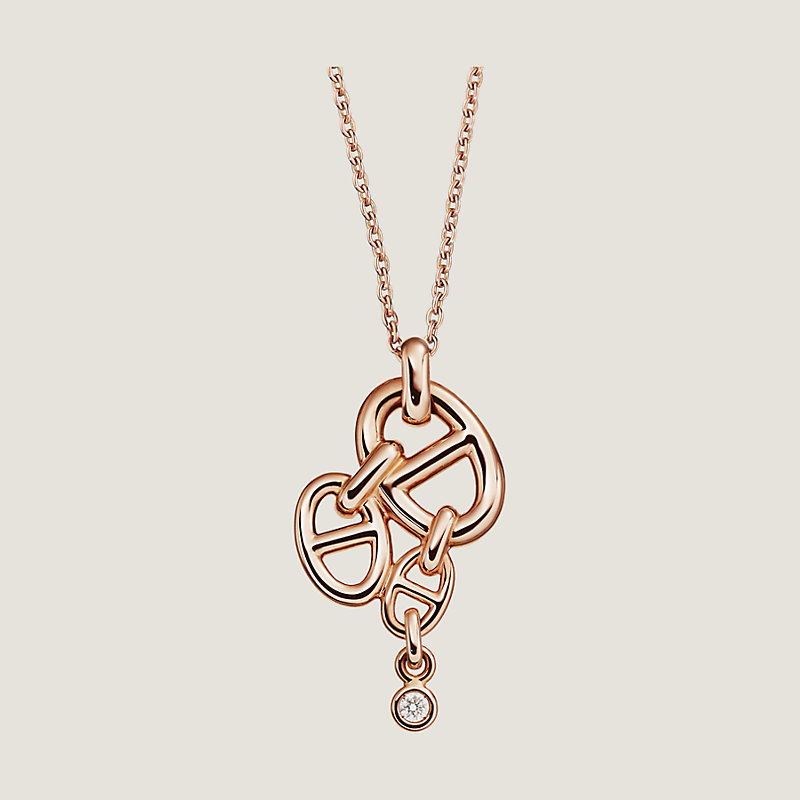 Hermes pendant in rose gold set with 1 diamond