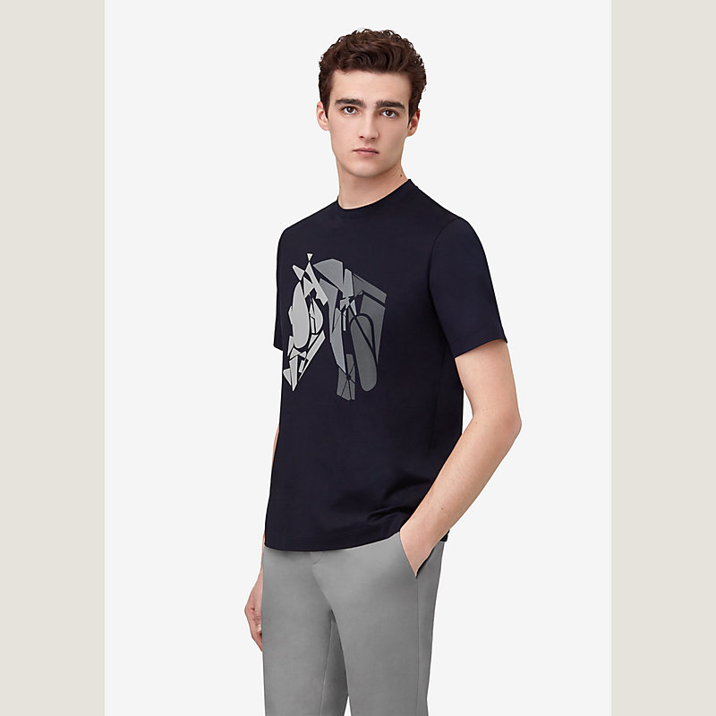 Hermes short sleeve crewneck t-shirt in cotton jersey with "Cheval de Courses" print (100% cotton)
