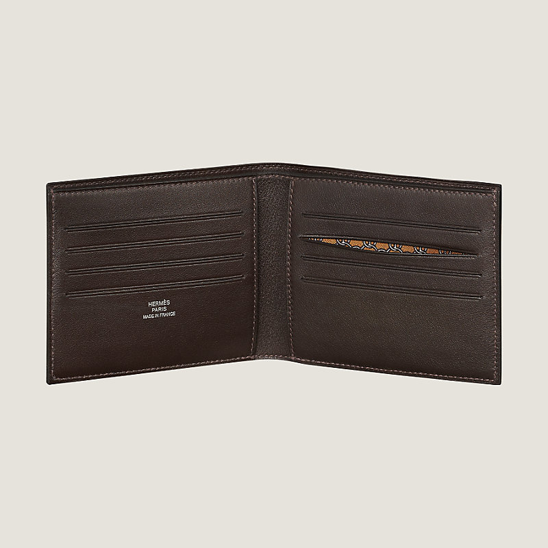 Hermes compact wallet in Swift calfskin with "Petit Fil d'Argent" printed silk lining