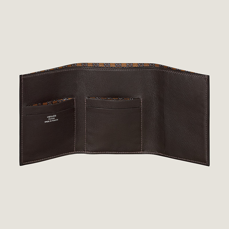 Hermes two-fold wallet in Swift calfskin with "Petit Fil d'Argent" printed silk lining