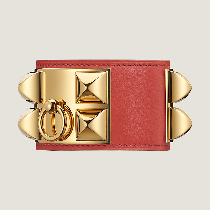 Bracelet in Tadelakt calfskin with gold plated Medor pyramid studs and ring, adjustable closure