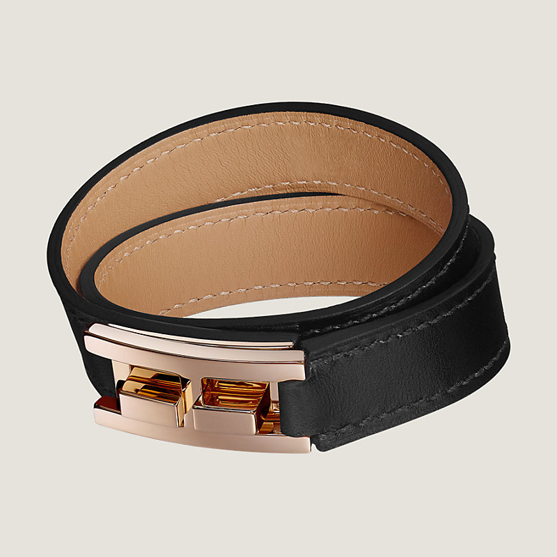 Hermes bracelet in Box calfskin, rose gold plated hardware