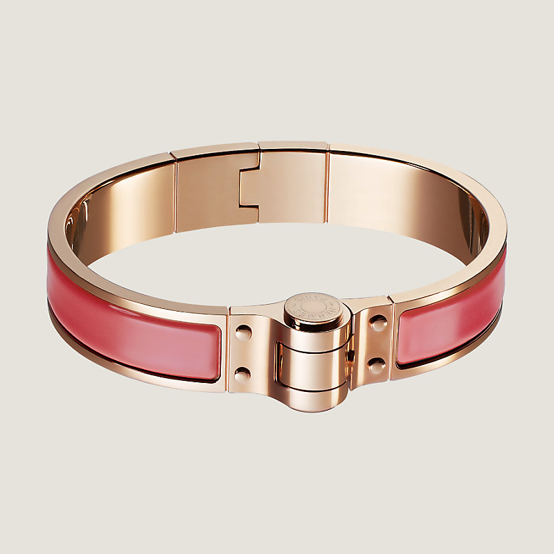 Narrow hinged bracelet in plain enamel with rose gold plated hardware