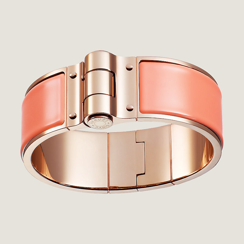 Wide hinged bracelet in plain enamel with rose gold plated hardware