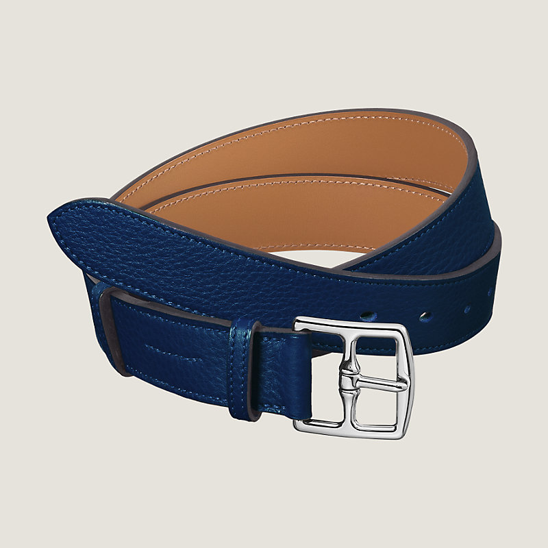 Leather belt in taurillon Clemence with palladium plated buckle and H detail