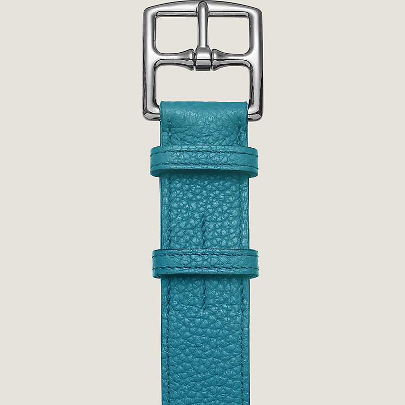 Leather belt in taurillon Clemence with palladium plated buckle and H detail