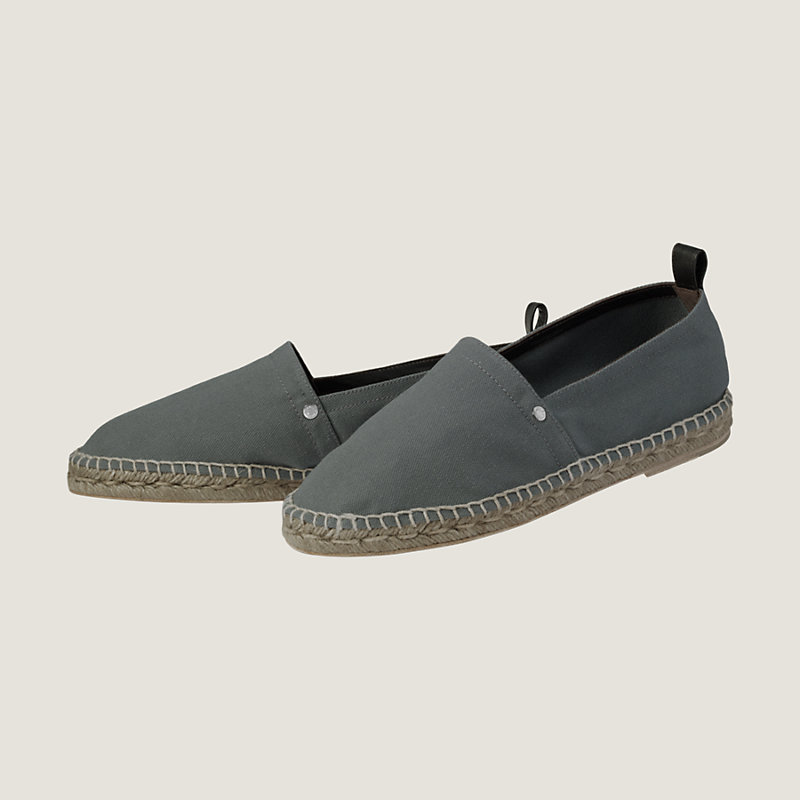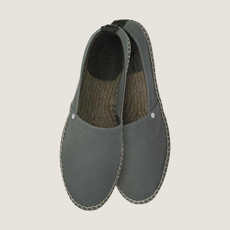 Hermes espadrille in cotton canvas and goatskin, palladium plated mini "Clou de Selle", hand-sewn rope sole