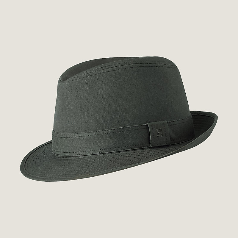 Hermes hat in cotton twill with linen canvas lining and signature diamond shaped "H" embroidery
