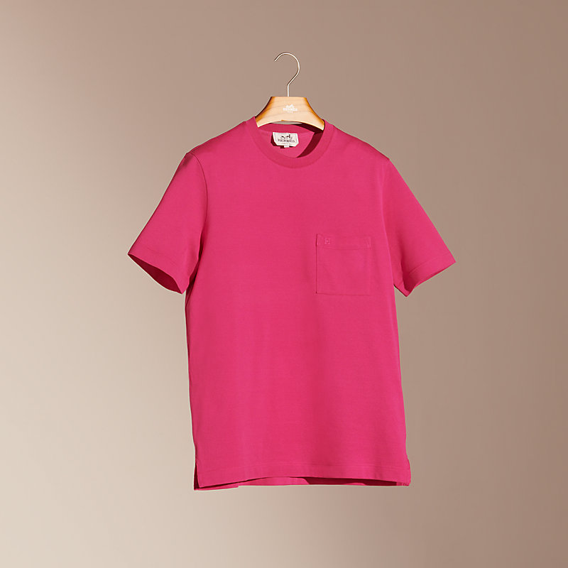 Short-sleeved round-neck T-shirt, H embroidery, in cotton pique, chest pocket (100% cotton)
