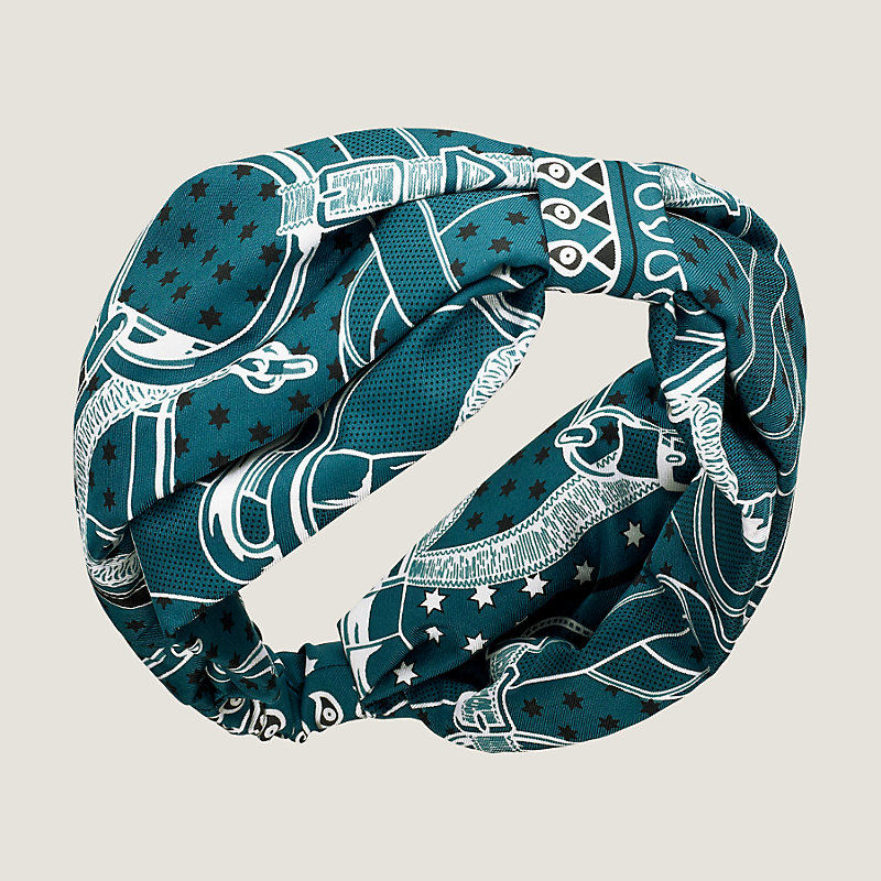 Hermes women's headband, "Bandana Eperon d'Or" pattern on twill
