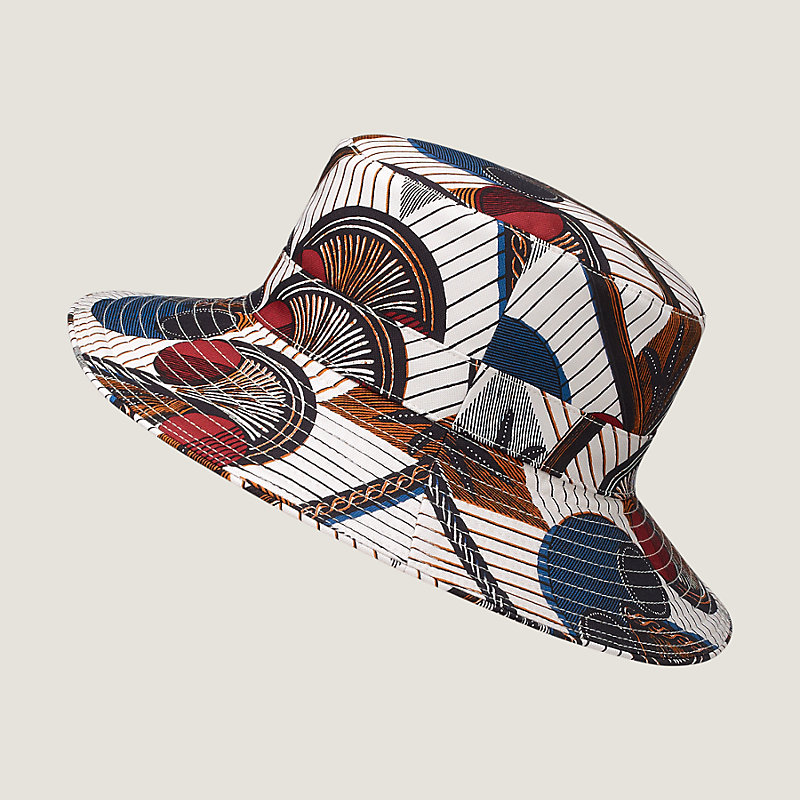 Hermes women's hat, "Wax Masques" print on panama silk, linen lining