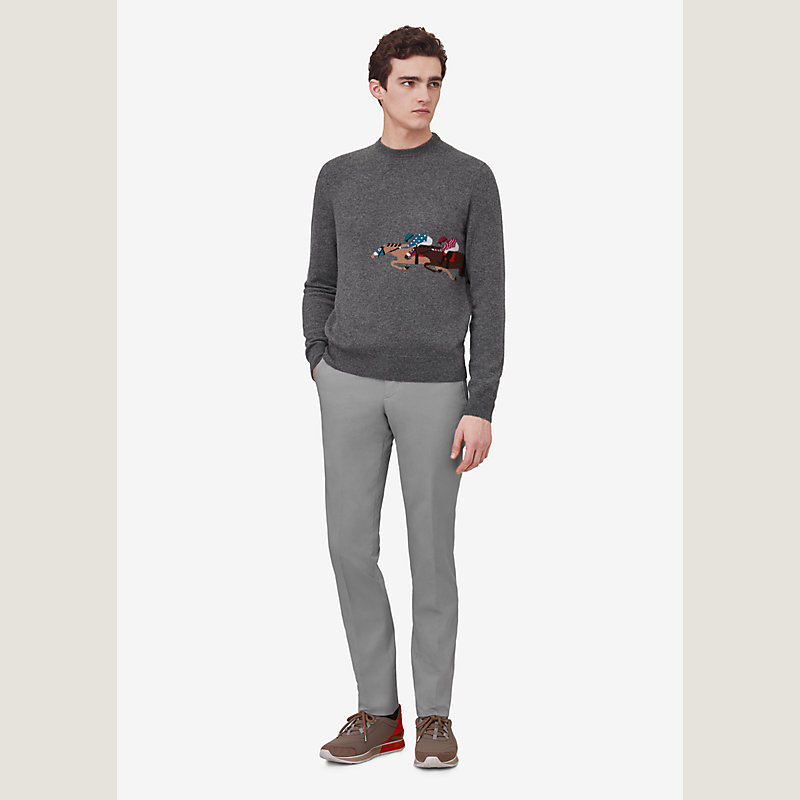 Hermes crewneck sweater in cashmere with "Jockeys Steeple Chase" print (100% cashmere)
